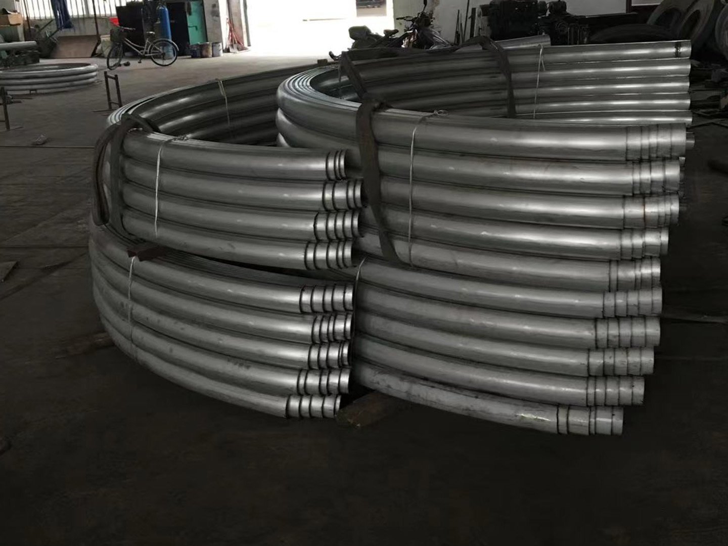 3.鼓脹法:一種是在管內(nèi)放置橡膠,然后在上方用沖子壓縮,從而使管子成形;另一種是液壓鼓脹成形,在管子中部充入液體,通過(guò)液體壓力將彎管鼓成所需要的形狀。